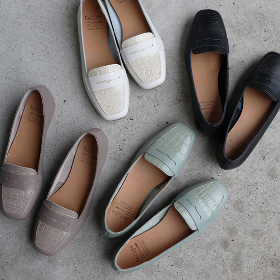 爽やかな色展開と華奢なホースビットがポイント Recipeの人気製品と同じ木型で作った新作ローファー