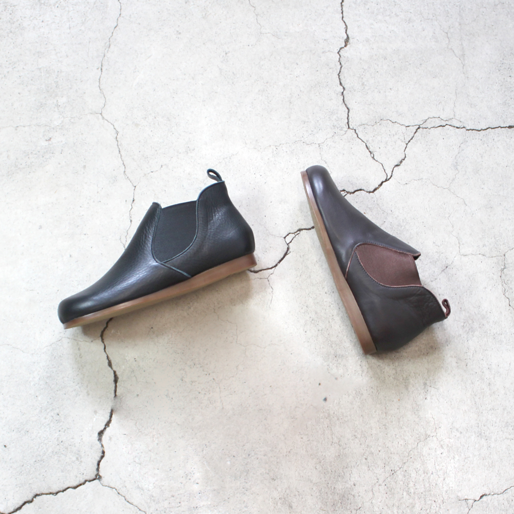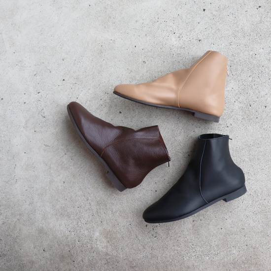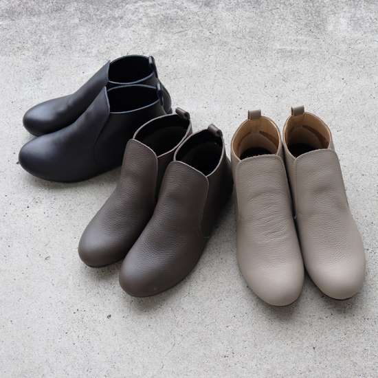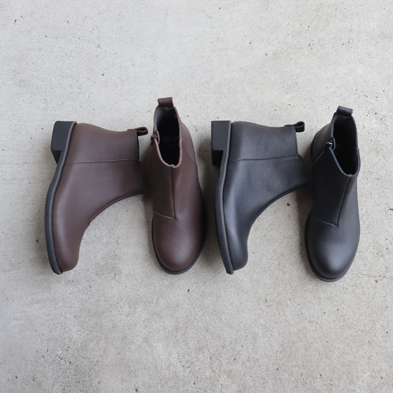 ソフトレザーの優しい質感を活かした人気のショートブーツ グリップ力のあるフラットソールにリニューアルし、更に快適に歩けるようになりました
