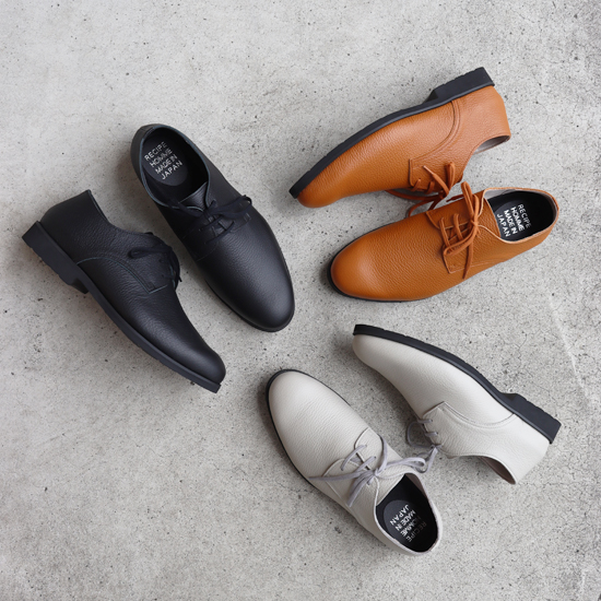柔らかなシボ革を使用したレースアップシューズ。 足にやさしく馴染み、ナチュラルな風合いが魅力。 カジュアルにもきれいめにも合わせやすい一足です。