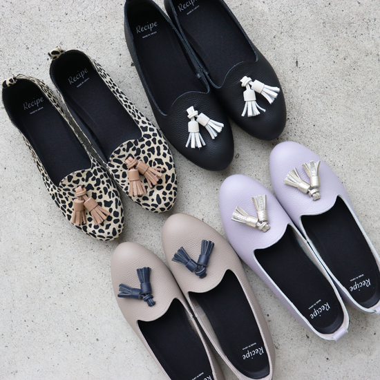 タッセルがポイントのフラットシューズ 程よいフィット感と、縫い目が少なく痛くなりにくい点が人気のポイント